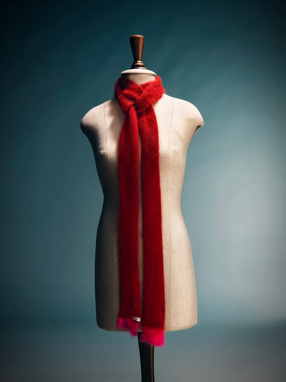 Skinny Scarf aus Superkid Mohair – Rot mit pinken Enden