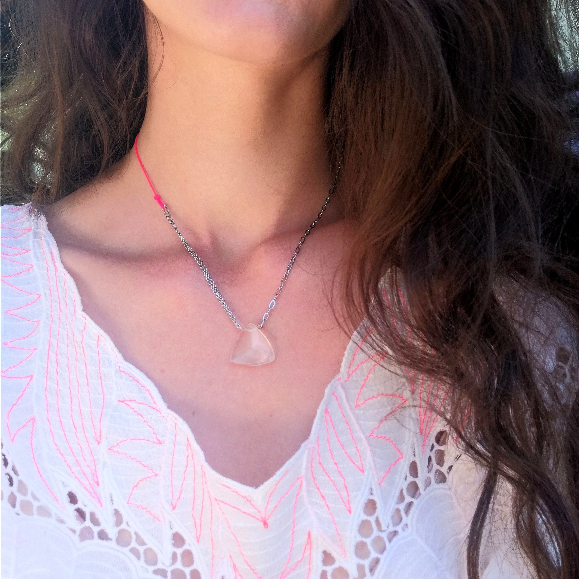 Bergkristall Dreieck Halskette silber | neon, schwarz | contemporary