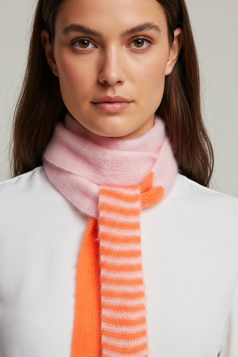 Überlanger Skinny Scarf aus hochwertigen italienischen Garnen. Fühlt sich weich an, ist federleicht und trotzdem warm. Teste verschiedene Tragevarianten: Peppe dein Outfit auf und lege ihn nur einmal um den Hals oder wärme dich, indem du ihn zu einem Kragen wickelst.